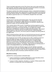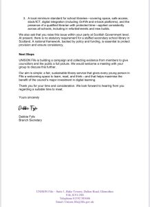 Today, UNISON Fife has written to all Fife councillors (Please see attachments below) to raise serious concerns about the decline in school library provision  — including the reduction and loss of qualified school librarians across our schools.